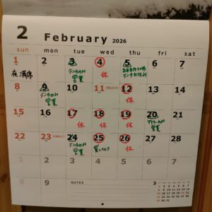 2月は営業が不規則になります。申し訳ございません🙇